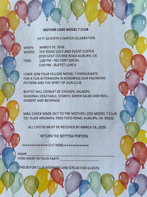 Mother Lode Model T ClubA Chapter of the Model T Ford Club of AmericaCelebrating 57 Years of Model T Fun |